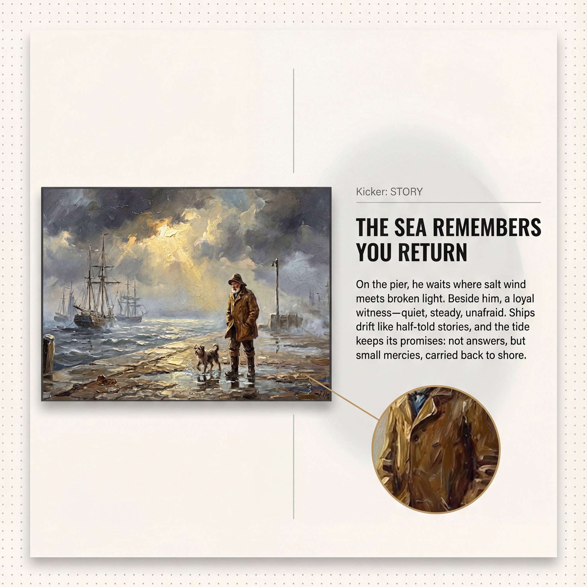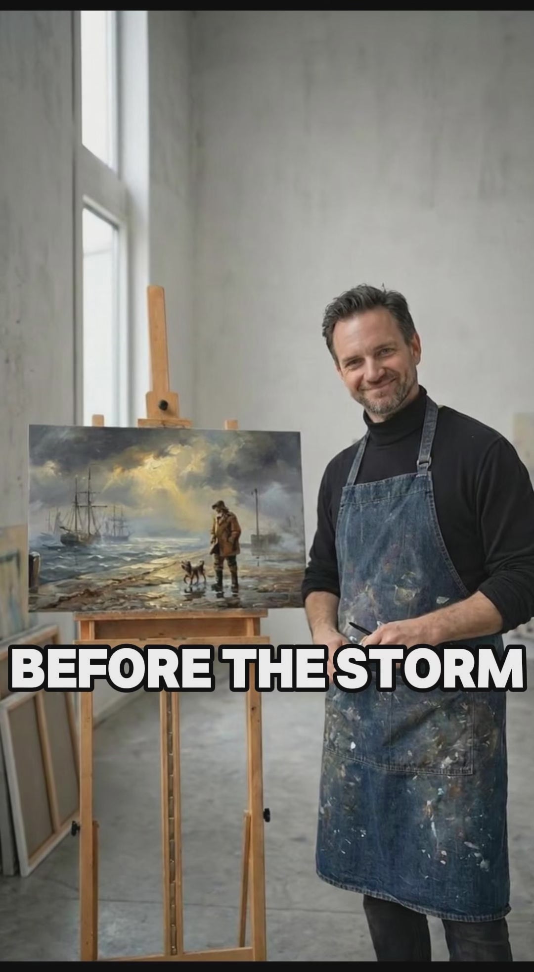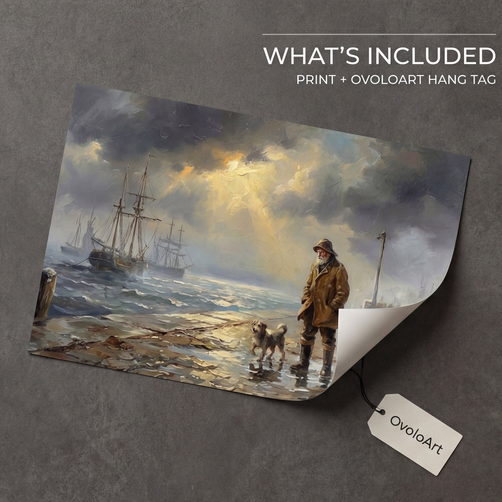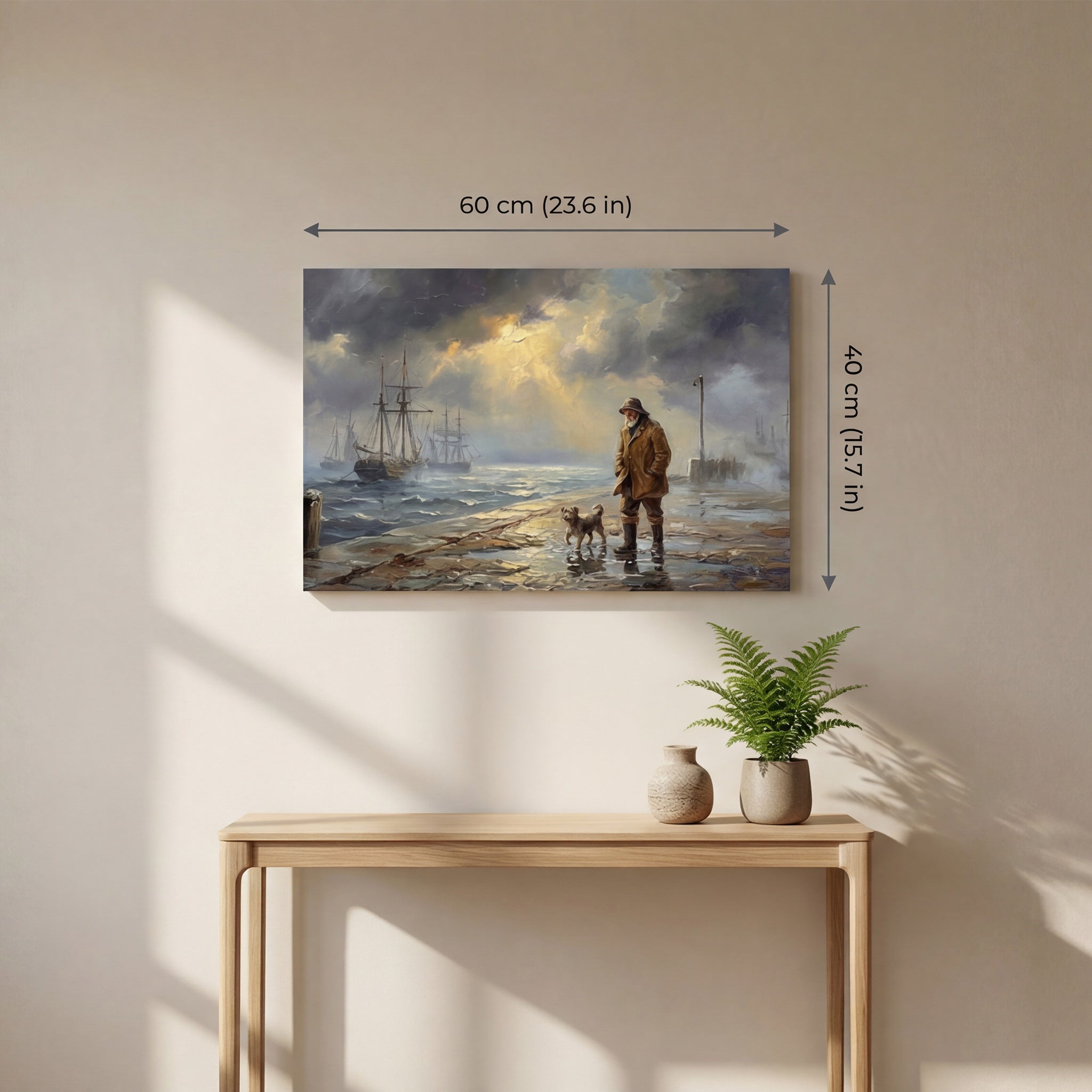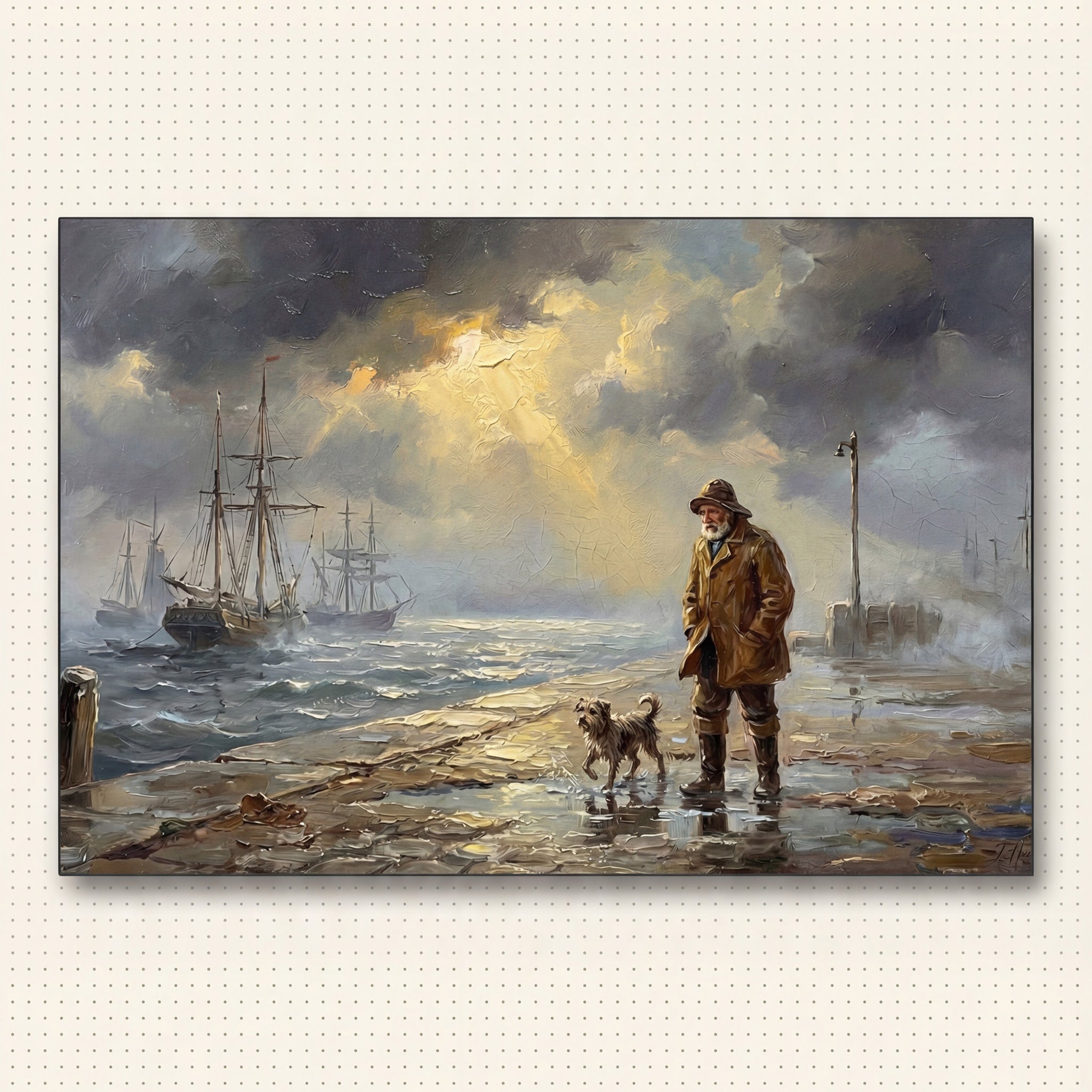 Before the Storm is a museum-quality impasto giclée print that captures a storm-lit harbor moment—dramatic light, calm tension, and rich painterly texture in 60×40cm.